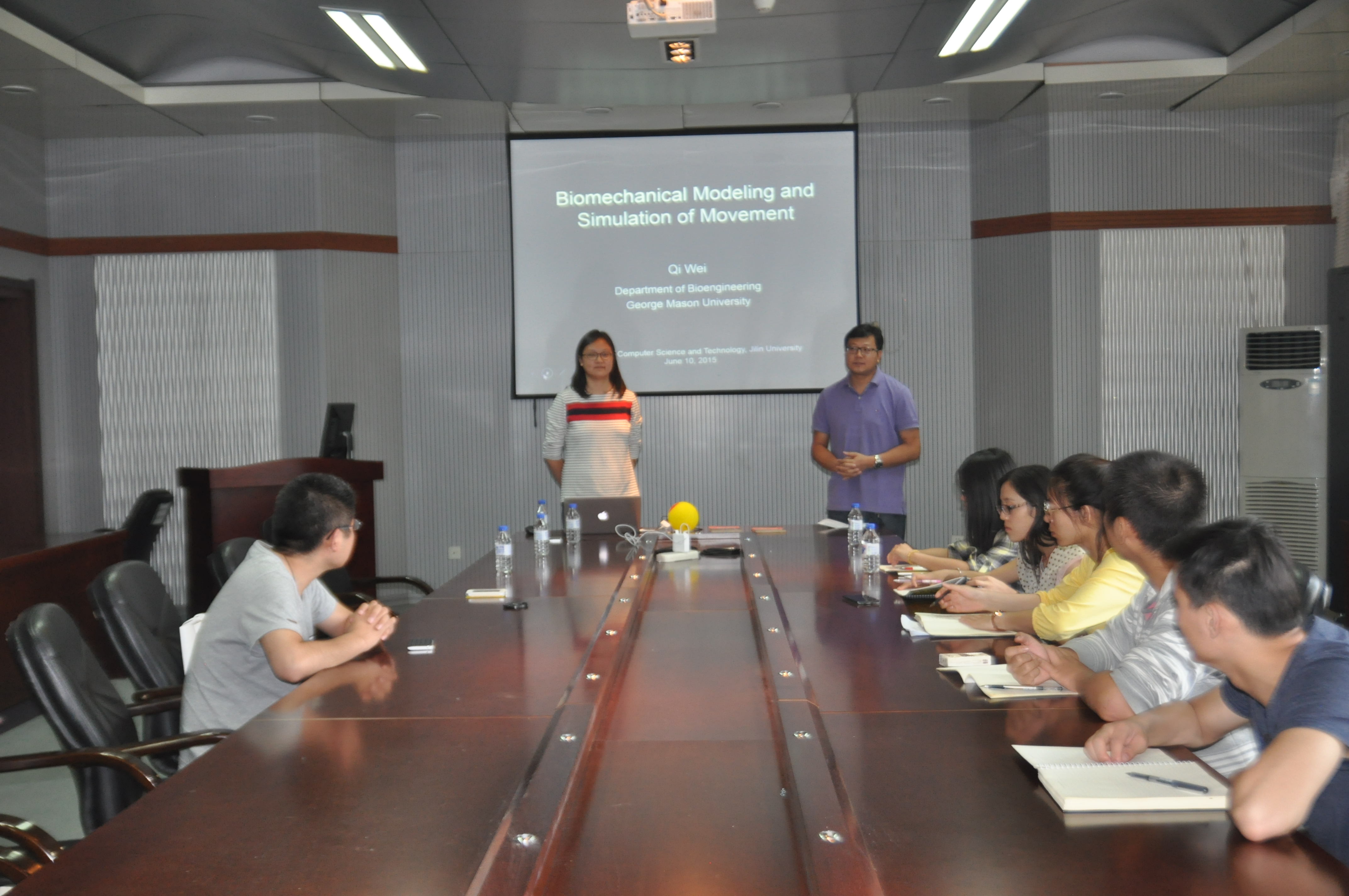 乔治梅森大学魏齐教授应SJB世俱杯官方网站及符号计算与知识工程教育部重点实验室的邀请,于2015年6月10日上午,作了题为“Biomechanical Modeling and Simulation of Movement”的学术报告。报告由计算机学院杨博教授主持。