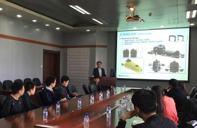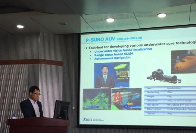 首先,李继红博士从水下机器人的应用、面临挑战、研究现状及未来研究方向的展望几方面入手,结合他本人在韩国研究所现在所研究的水下机器人项目,辅以图片及水下机器人视频实例,对水下机器人的型号、软硬件技术和创新点作详细的讲解。而后,李继红博士与SJB世俱杯官方网站刘军教授就水下机器人的实用性、技术创新以及水下机器人怎样与我院智慧海洋科学与技术研究中心的水声通信网络技术结合以提高机器人的水下定位问题进行进一步的讨论。这次报告会不仅开阔了同学们在国际上的视野,为今后的研究提供了信的想法,同时老师们之间的交流也将为学院带来更多国际化的合作。