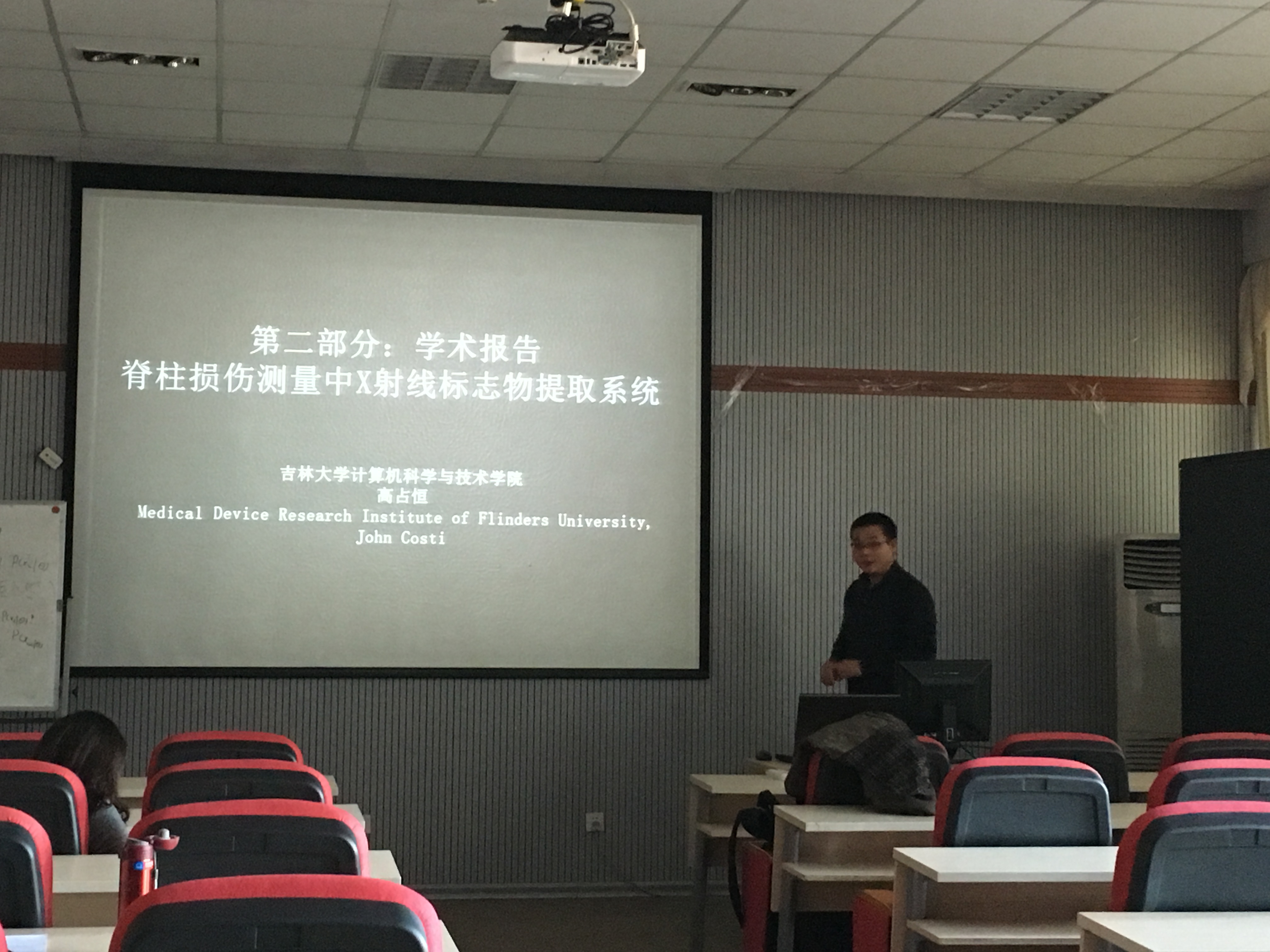 2016年11月24日上午,SJB世俱杯官方网站计算机学院高占恒副教授在计算机学院做了题目为“脊柱损伤测量中X射线标志物提取系统”的学术报告。报告主要介绍了高占恒副教授在澳大利亚从事访问学者期间,取得的一系列关于脊柱损伤测量中X射线标志物数字化的研究结果。报告中,高占恒副教授首先介绍了澳大利亚的工作、生活情况,然后介绍了脊柱损伤问题的定义、目前解决方案、本人在访学期间做的工作,着重介绍了其在访学期间研发的一款半自动X射线标志物数字化软件WireDig,包括软件的功能、特点,以及与原有软件相比的优势。