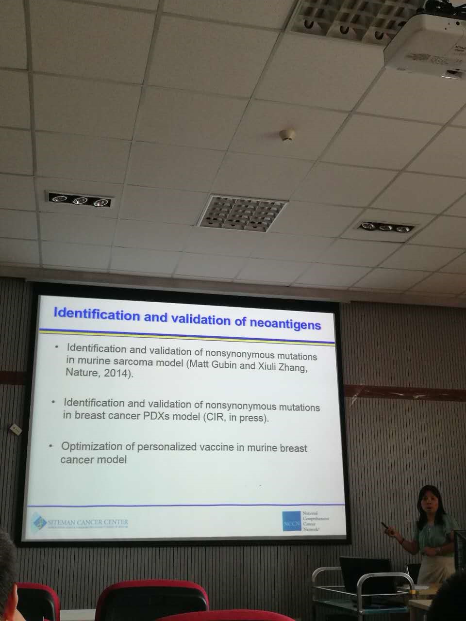 本次讲座张老师主要讲述了三部分内容。她首先报告了其2014年在nature发表的合作工作,即小鼠肉瘤模型中的非同义突变的鉴定和验证,之后又介绍了乳腺癌PDX模型中的非同义突变的鉴定和验证,最后一部分内容是小鼠乳腺癌模型个体化疫苗的优化。张老师的讲座深入浅出、脉络清晰。报告结束后又与在场师生进行了深入的探讨和交流,就癌症领域的最新进展以及生物信息学在癌症研究中所起的作用进行了充分的讨论。通过本次报告,使得在场的师生近距离地接触到了世界顶级研究成果大餐,取得了良好的收获。