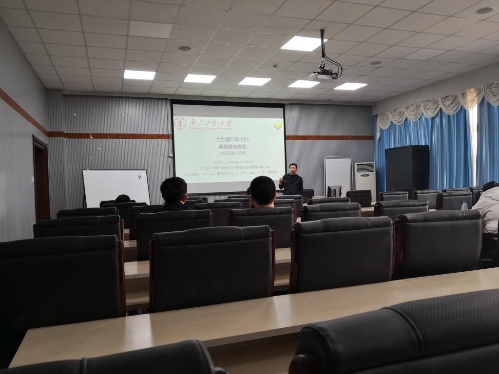 2018年4月26日下午,广东工业大学的刘文印教授在SJB世俱杯官方网站A521做了题为“大数据背景下的网络身份安全”的学术报告。刘文印博士目前任广东工业大学计算机学院特聘教授、博士生导师。刘文印博士因在图形识别及反网络钓鱼欺诈等研究领域的杰出贡献,于2003年获国际模式识别学会颁发文档分析与识别领域杰出青年科学家奖,于2010年入选国际模式识别学会会士。2015年入选广东省第五批引进创新科研团队带头人,创立网络身实验室,致力于研发国际领先的网络身份安全技术。