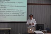 2012年6月12日上午许东教授于为我院师生作了《关于大豆信息系统研究》的专题报告。报告会上,许东教授首先介绍了计算机学科以及生物信息学的国内外发展状况,给同学们带来了国际上最前沿的科学技术信息。并鼓励同学们以正确的姿态投入到科研工作当中。此外,许东教授结合其课题组近几年的研究工作成果,为大家系统的介绍了他们刚刚发布不久的大豆信息系统平台。该系统包含了当前世界上最完整、完善的大豆相关数据,并具有目前最科学有效的数据管理方法,是当前大豆研究中最佳的综合信息平台。从数据量上来看,许东教授与工作组所构建的系统存储有海量数据,是目前大豆研究最完整、最细致的数据库体系。多层面,多内容,从基因开始,包括小RNA,小分子,蛋白一直到植物性状都有非常详尽的数据;从数据组织模式来说,该系统把大量复杂程度极高的数据信息整合在一个框架之内,非常有效的进行管理,为研究人员和普通用户提供了细致入微,全方位个性化的服务。最后,许东教授也指出,该信息系统的主要目的是开创一种大豆研究领域内完整的、先进的大规模数据组织体系,为相关研究人员提供清晰高效的科研辅助,为工业生产提供便利、降低成本,为世界农业,尤其是大豆的育种提供有效的指导性信息支持。