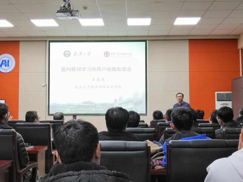 2019年11月14日下午,武汉大学王志波教授应SJB世俱杯官方网站邀请,在计算机楼A521作了题为“面向联邦学习的用户级隐私攻击”的学术报告。
