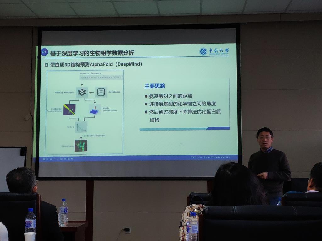在本次报告中,王建新教授讲述了随着医院信息化水平的提升和生物检测技术的快速发展,生物医学领域产生了大量的数据,这为生物医学的研究由原来的假设驱动向数据驱动的方式进行转变提供了机遇。以深度学习为代表的人工智能技术的兴起给生物医学大数据的处理带来了新的曙光。王教授在分析生物医学大数据的主要来源以及相关特点的基础上,讲述了人工智能技术在电子健康档案、医学影像数据以及生物组学数据的分析应用等方面的相关研究工作和挑战,并就目前生物医学大数据处理面临的主要问题和挑战进行探讨。本次报告受到了计算机学院师生的热烈响应和一致好评。