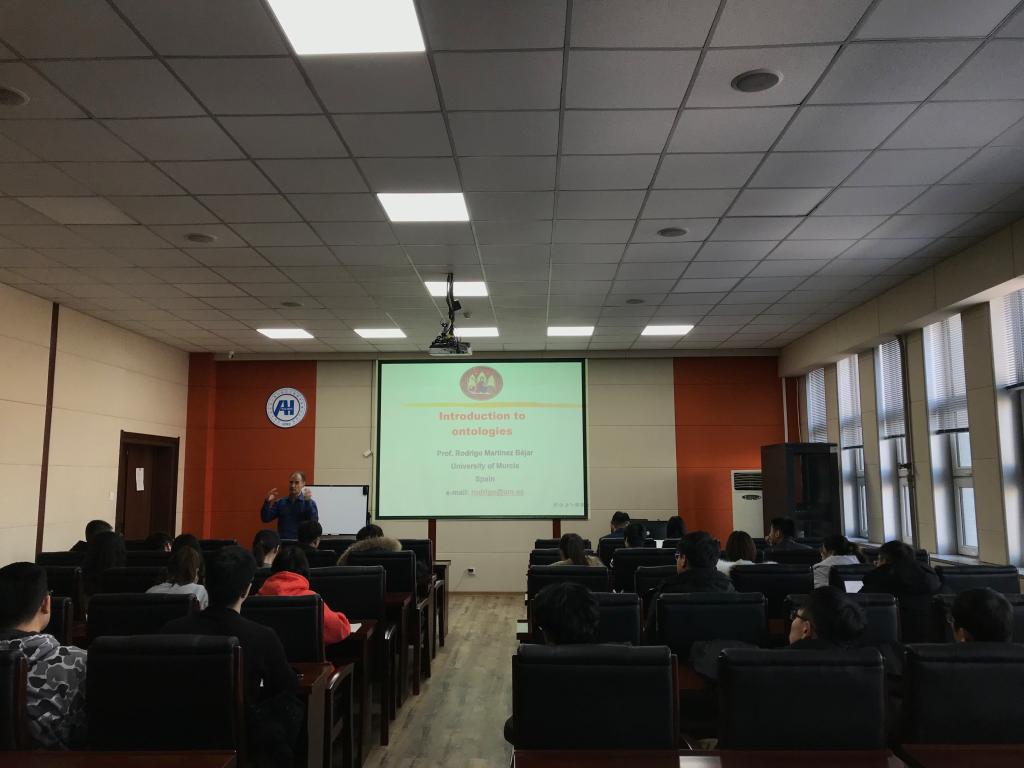 在本次报告中,Rodrigo Martínez-Béjar教授首先介绍了本体的来源,而后介绍了本体在计算机科学的定义,包括本体的概念、属性、价值和公理,还介绍了本体的类型以及本体的构建过程和构建方法的主要特点,包括策略设计、知识搜索和本体的组件构建等。报告结束后,Rodrigo Martínez-Béjar教授还认真回答了同学们提出的关于本体构建和知识表示的问题。本次报告受到了计算机学院师生的热烈响应和一致好评。