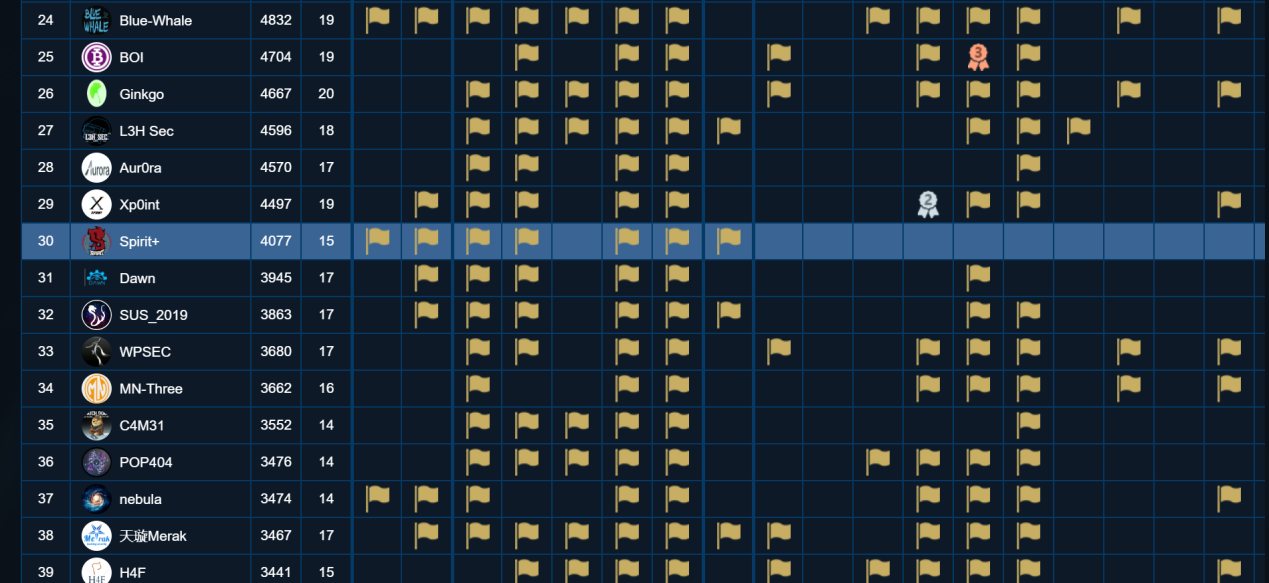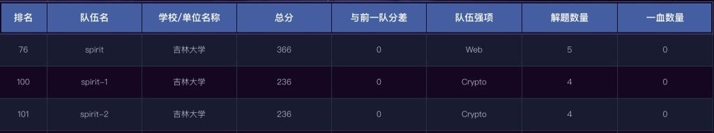 大赛由中国网络空间安全协会、中国网络空间安全人才教育联盟、XCTF联赛联合32所高校发起组织,由32所高校战队命题,赛宁网安提供技术支持,采用在线网络安全夺旗挑战赛的形式,面向全国开放。来自SJB世俱杯官方网站和其他学院的8名学生组成的Spirt+战队在此次比赛中成功解出15道题目,获得4077分,在705支参赛队伍中取得了第30名的成绩,排进了前5%,对各个题型都有不同程度的突破。