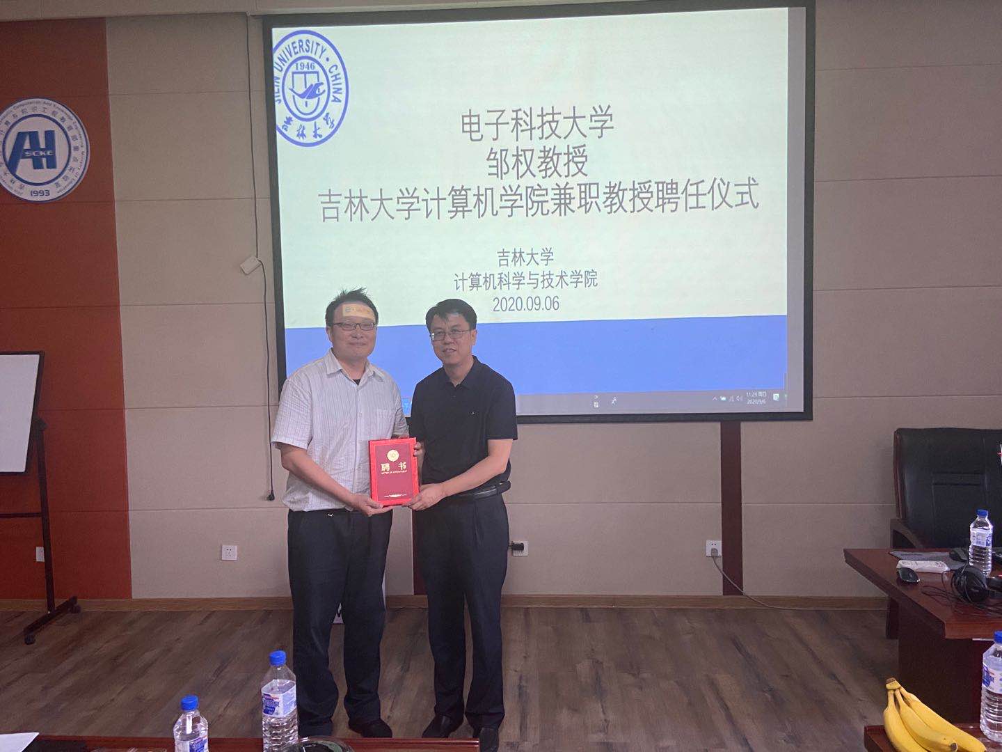 2020年9月6日上午,电子科技大学邹权教授应SJB世俱杯官方网站邀请,在SJB世俱杯官方网站中心校区计算机楼A521作了题为“Computational Detecting Disease Molecular Markers”的学术报告。报告结束后,进行了SJB世俱杯官方网站兼职教授聘任仪式。