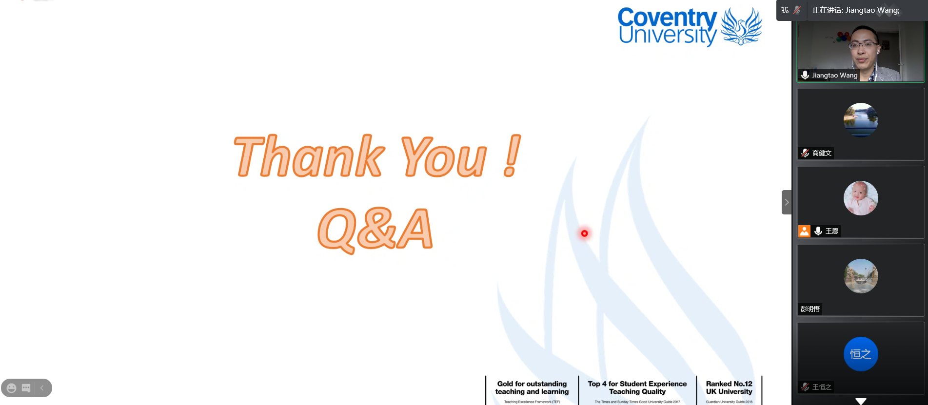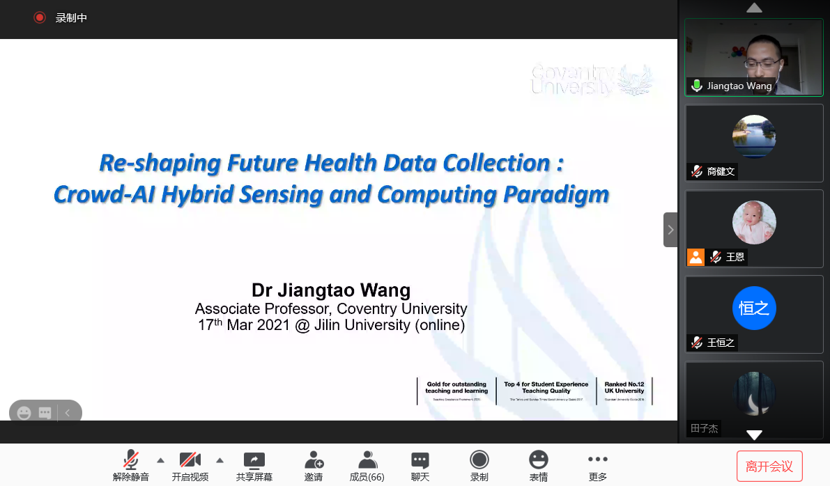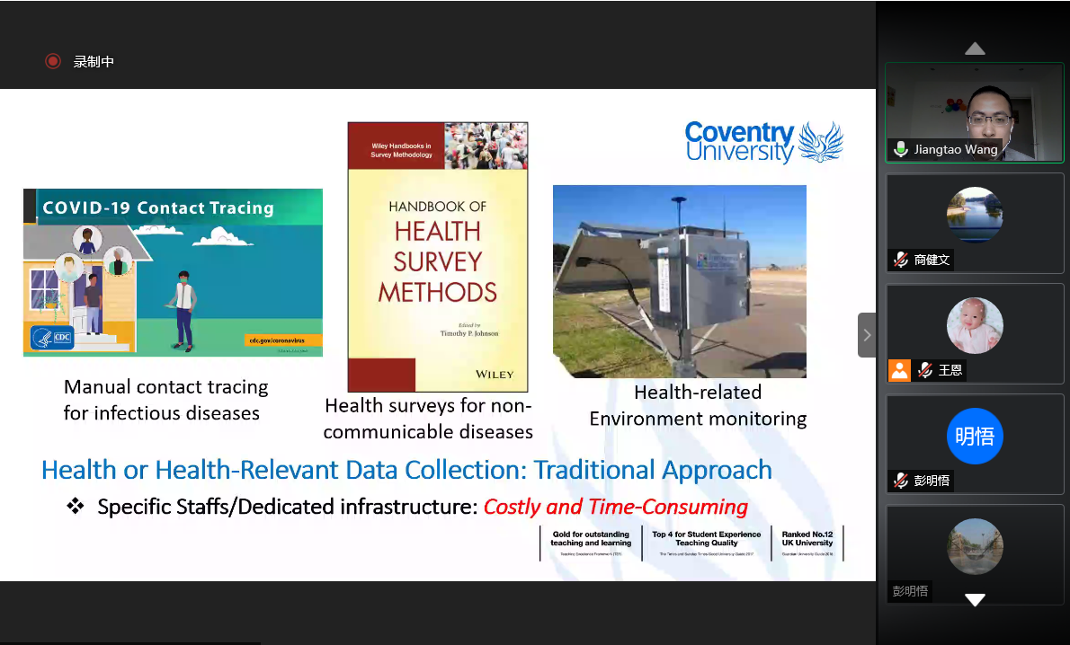 2021年3月17日下午,英国考文垂大学王江涛副教授应SJB世俱杯官方网站邀请,以线上形式作了题为“重塑未来人群健康数据的收集:Crowd-AI混合感知和计算范例”的学术讲座。