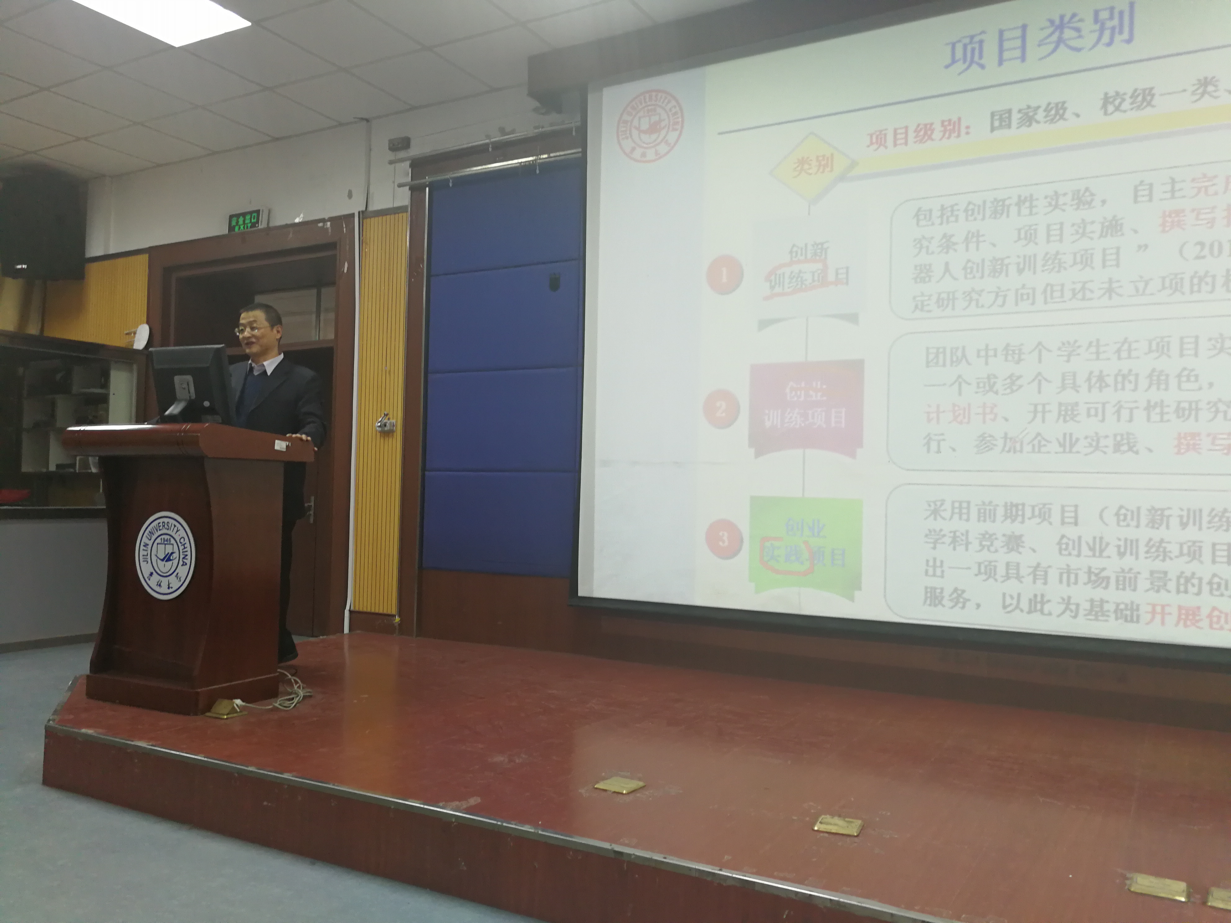 2017年度“大学生创新创业训练计划”项目申报工作将于5月开始。为了让同学们进一步了解 “大学生创新创业训练计划”并积极参与申报,SJB世俱杯官方网站于4月17日中午12:20在计算机楼B108召开了 “大学生创新创业训练计划”项目申报动员会。会议由SJB世俱杯官方网站赵宏伟教授主讲,2015级本科生和部分2014级本科生参加了会议。