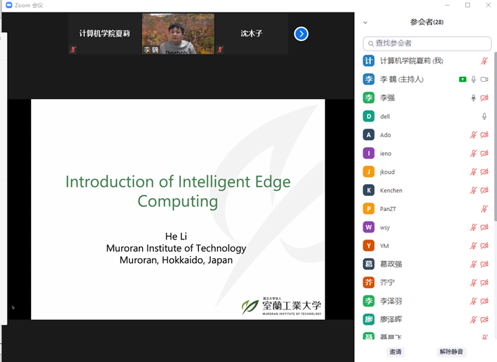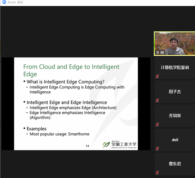 2021年12月14日下午,日本国立大学法人室兰工业大学助理教授,日本文部科学省卓越研究员李鹤老师应SJB世俱杯官方网站邀请,在线上ZOOM会议平台作了题为“从云计算、边缘计算到智能边缘计算”的学术报告,报告由SJB世俱杯官方网站副院长李强教授主持。