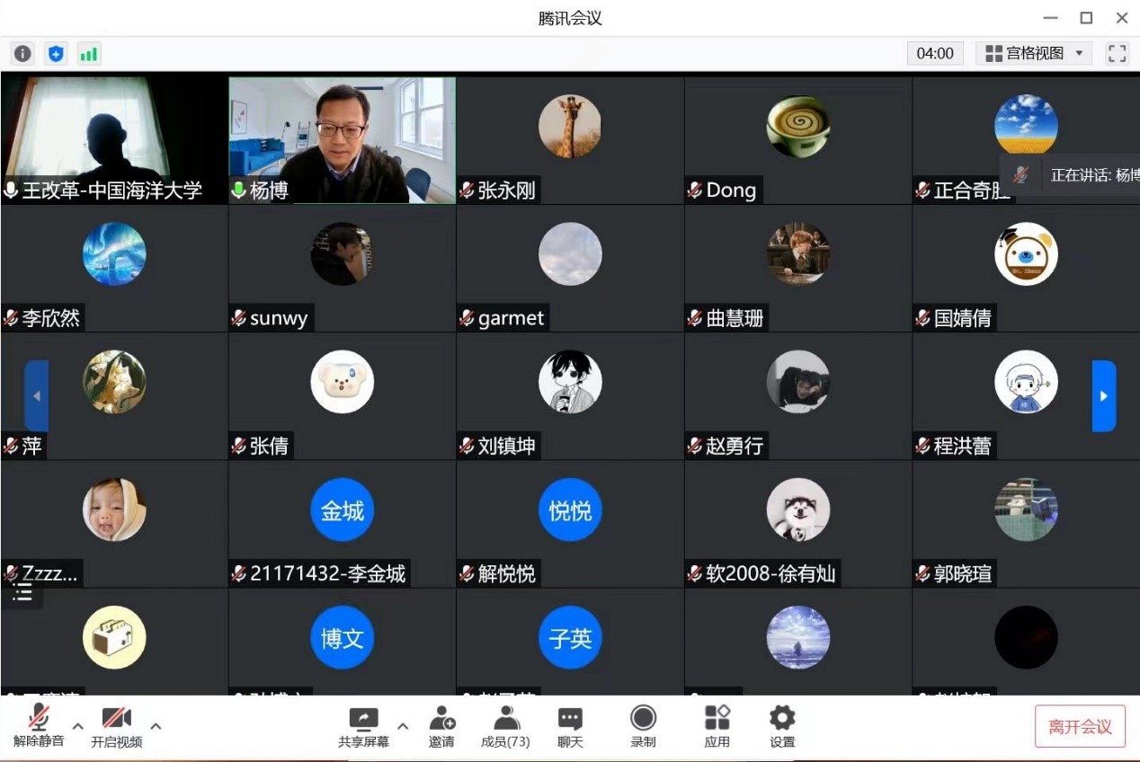 2022年3月19日 下午14:00,中国海洋大学王改革副教授应SJB世俱杯官方网站邀请,利用腾讯会议作了题为“如何科研入门”的线上讲座,这是计算机科学技术专家系列讲座的第三场。SJB世俱杯官方网站、软件学院院长杨博教授主持此次学术讲座,杨院长代表学院对王改革老师在SJB世俱杯官方网站抗击新冠疫情特殊时期应邀做这次学术讲座表示由衷的感谢。计算机学院、软件学院共100余名师生参加了此次报告会。