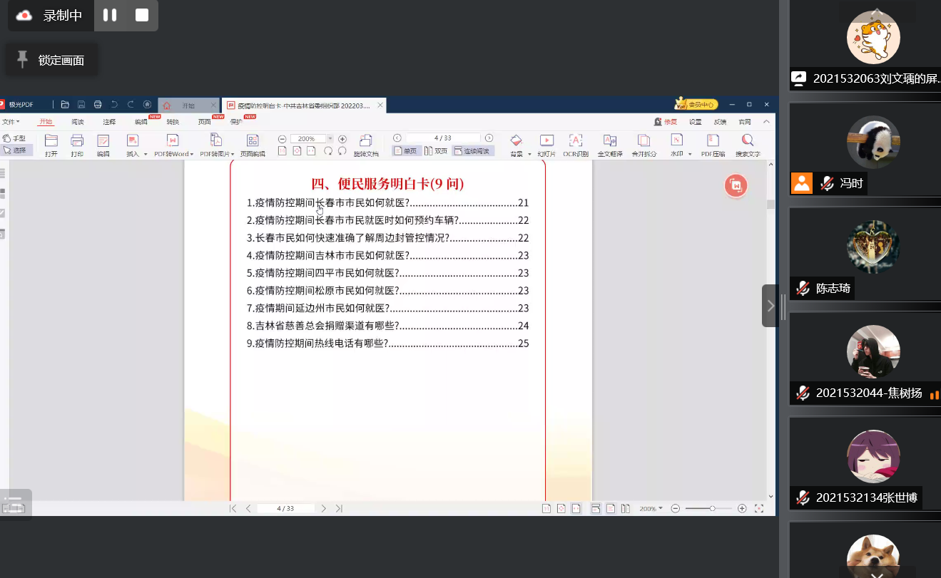 其中刘文瑀同学提到他非常感谢自己的导师,老师在第一时间关注在校的同学的身体情况,让大家保持好心情,还有专业课老师对病毒知识的讲解都让他对疫情有了更深的了解,老师的关怀也让他十分温暖。王伟任同学则提到本科同学在知晓吉林的疫情很严重,联系了当地校友会捐钱捐物的事情。让他印象深刻的地方是这名同学家在贵州,他的本科专业是地质工程,在当时很多人都没有选择这个专业,都是调剂到这个专业的。但是这名同学是自己选的,有一次他问这名同学为什么,这名同学提到因为家庭的原因,他的一些学费都是当地家乡的政府资助的。而且在云南贵州那边,每年雨季都会有很多的泥石流灾害,他之所以选这个专业,就是想毕业之后回到家乡,能为家乡做出一点贡献。而且他提到这名同学整个大学他都很努力,毕业也没有丝毫的犹豫,回到了家乡。因为在吉大学了很多的知识,所以当吉大有困难的时候,他尽自己的努力去帮助母校。这名吉大校友的故事深深感动了大家,人与人之间的这种善意和正能量是真的在传递的,我们也为能有这样优秀的校友自豪。