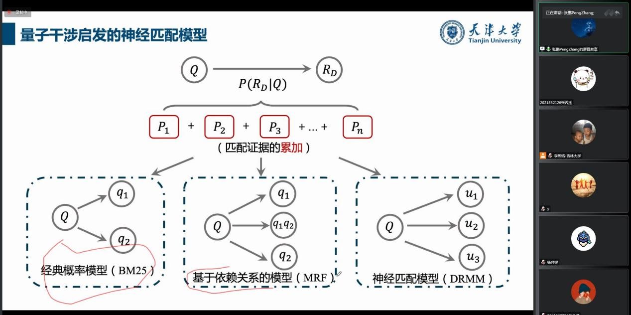 2022年10月24日,天津大学张鹏老师应SJB世俱杯官方网站邀请,利用腾讯会议作了题为“自然语言的量子不确定性”的学术报告。SJB世俱杯官方网站李熙铭副教授主持了讲座。