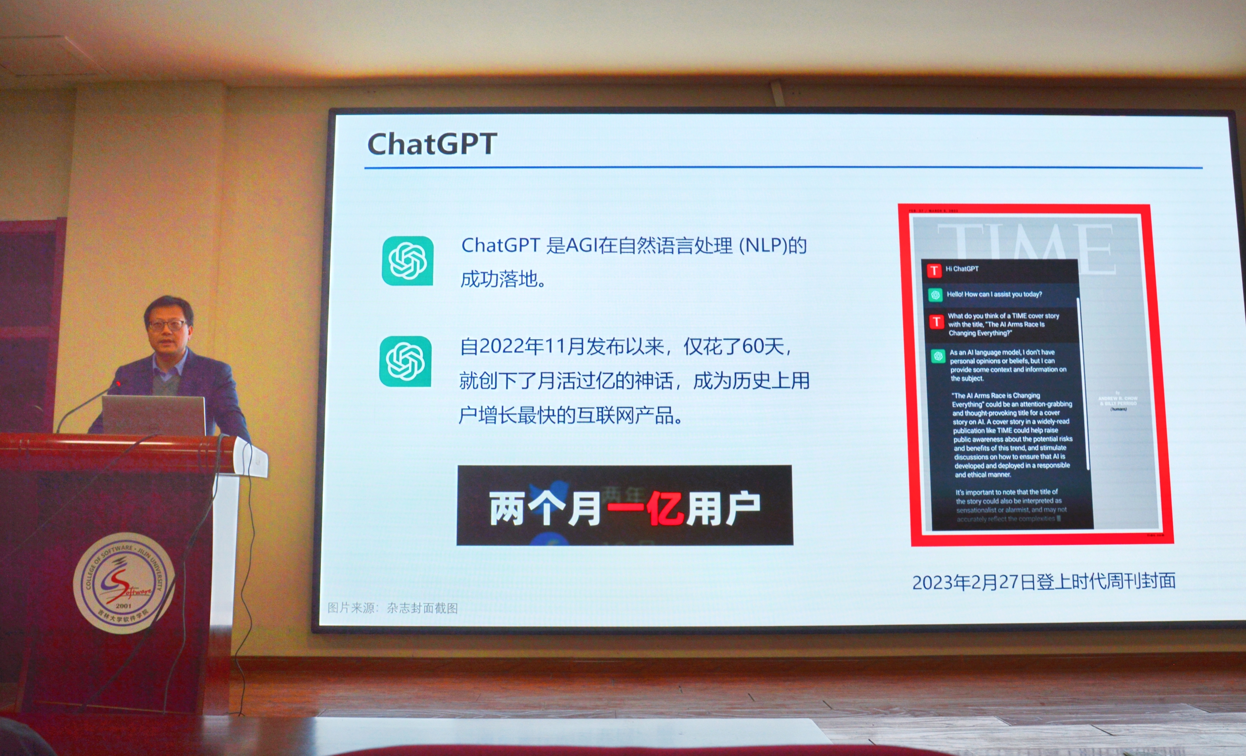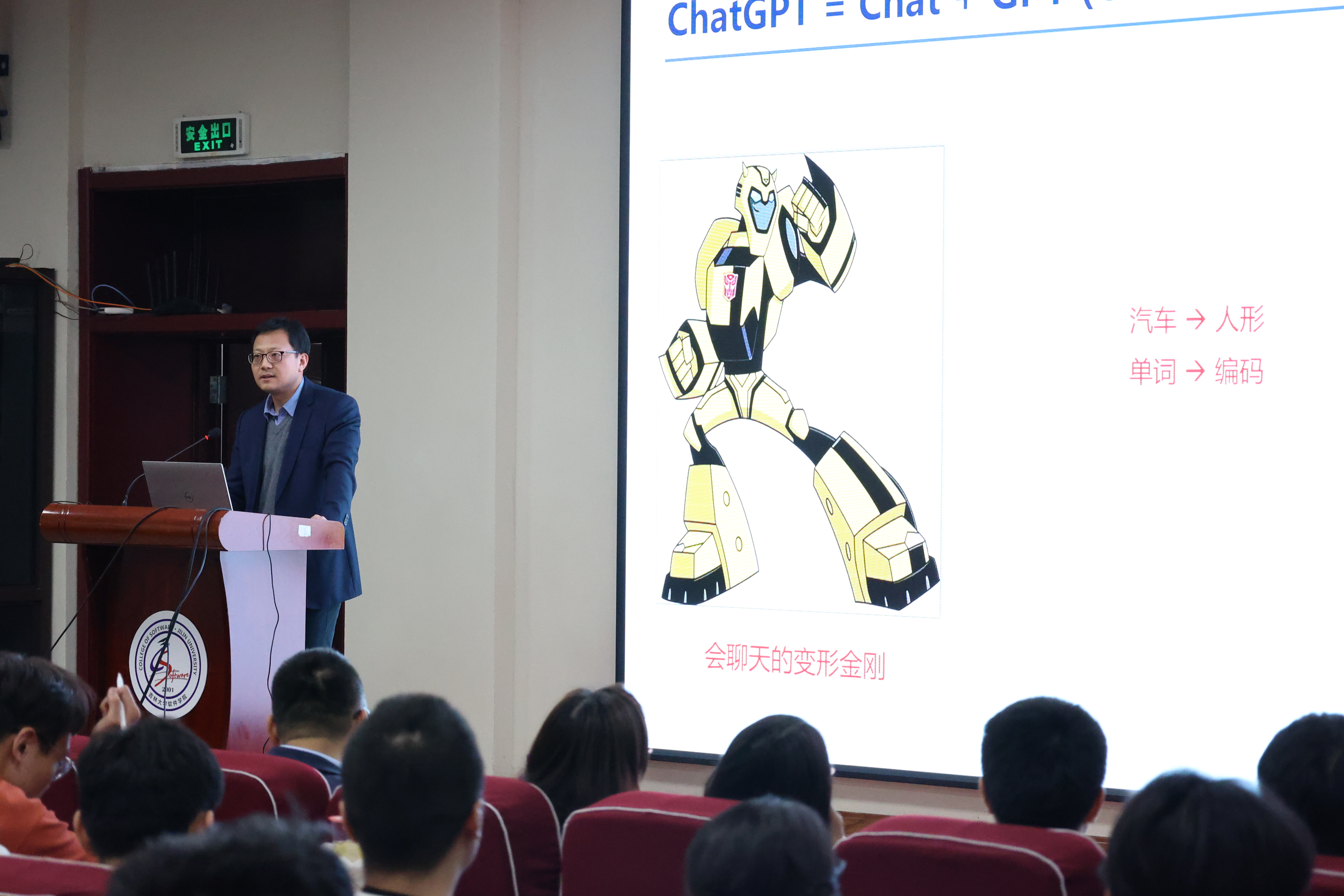 3月24日晚上,SJB世俱杯官方网站、软件学院院长杨博教授在王湘浩楼一楼大讲堂为两院学生主讲了题为《Chat ChatGPT》的学术讲座。在长达两个小时的讲座中,杨博院长通过针对性的案例结合人工智能在当下社会中的具体实践,将人工智能的演进史和ChatGPT的现状向同学们生动呈现。