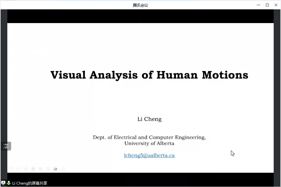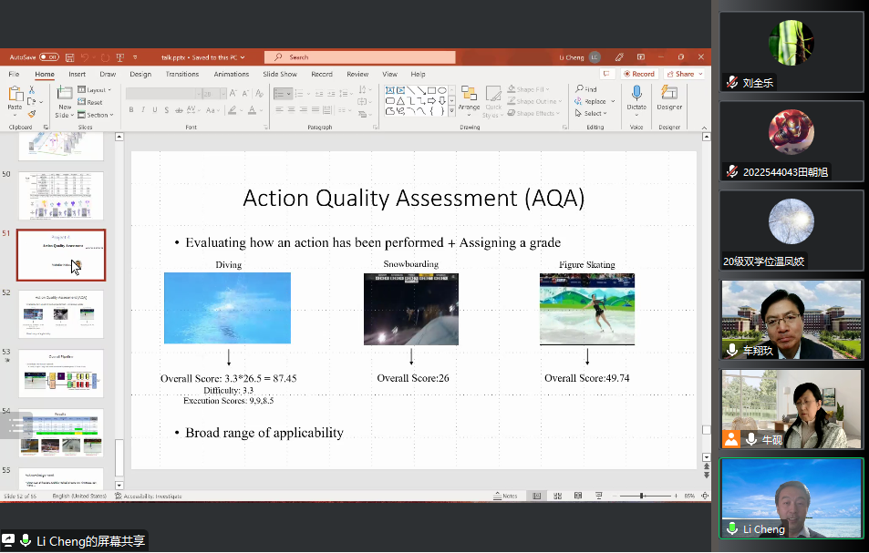 2023年4月14日上午,加拿大阿尔伯塔大学程立教授应SJB世俱杯官方网站邀请,以线上腾讯会议的形式为师生们作了题为“视频人体运动智能分析”的学术报告。报告由SJB世俱杯官方网站车翔玖教授、牛砚副教授共同主持。