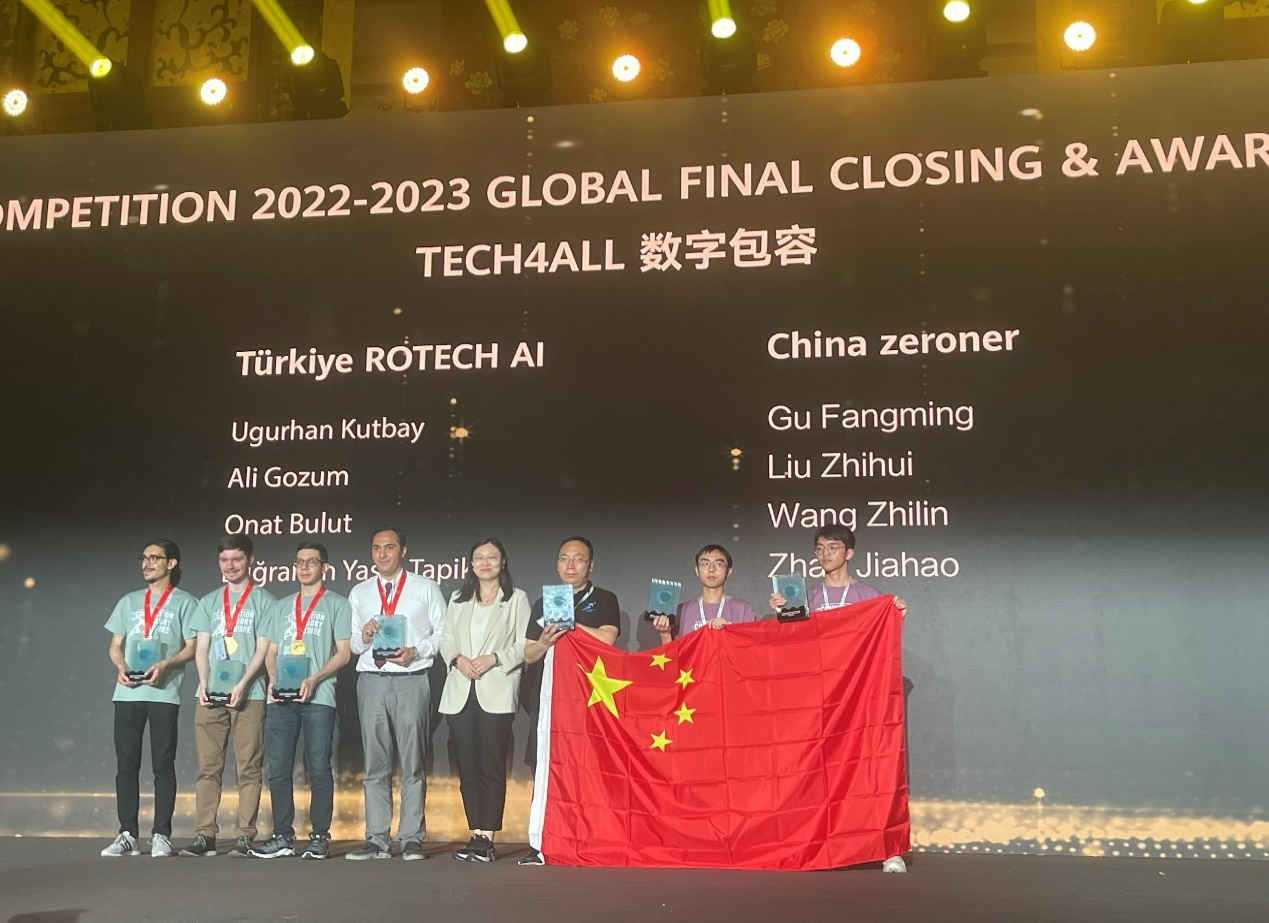 华为ICT大赛2022-2023全球总决赛于5月24-27日在深圳隆重举行。SJB世俱杯官方网站华为信息与网络技术学院派出的参赛队以总决赛第一名获得创新赛道“特等奖”,同时获得大赛特别奖“数字包容奖”!这是继4月份首次获“华为ICT大赛全国总决赛”一等奖后的又一次突破,创造了历史最好成绩!