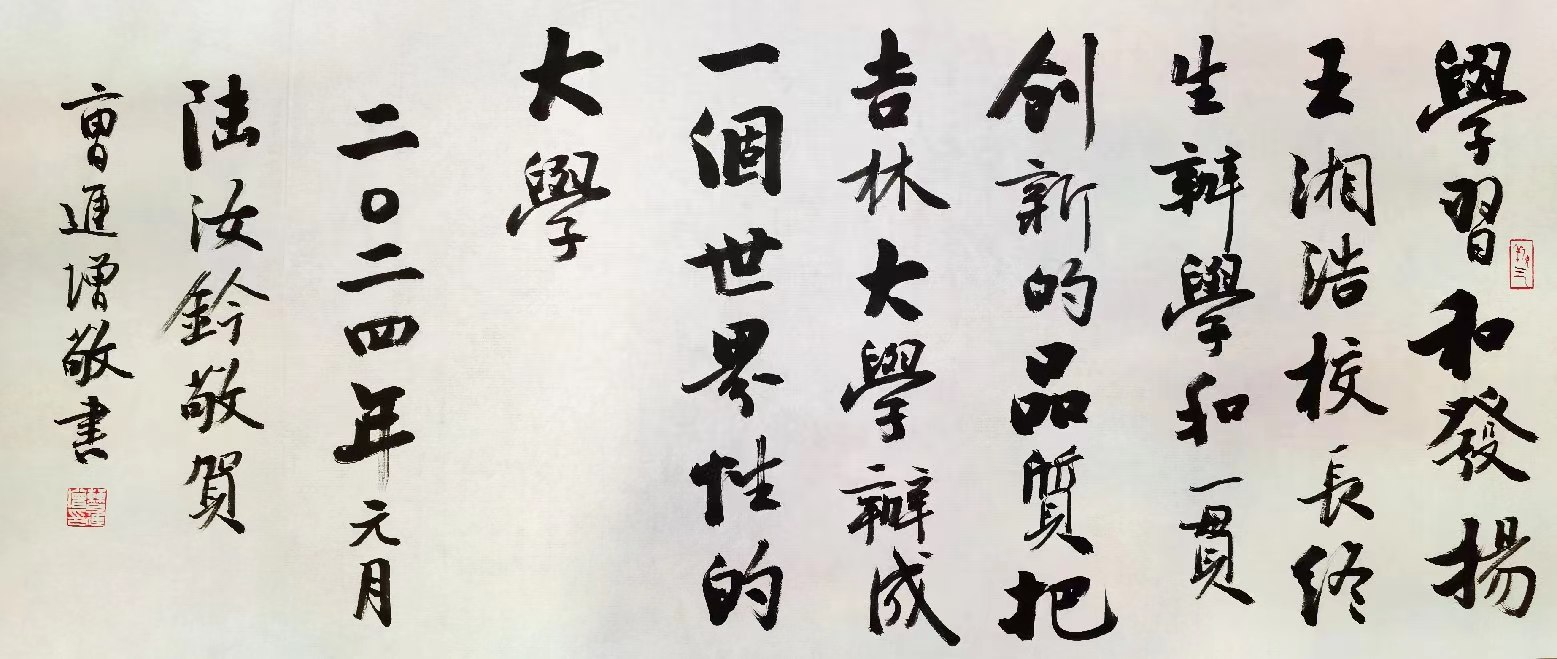 2023年12月28日,陆汝钤院士应杨博院长的邀请为学院师生题词,并委托启功大师的弟子、中国书协常务理事曹进增书写。