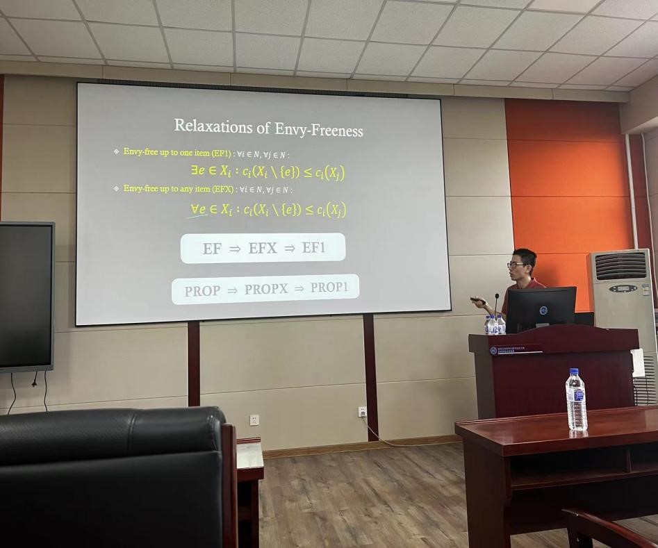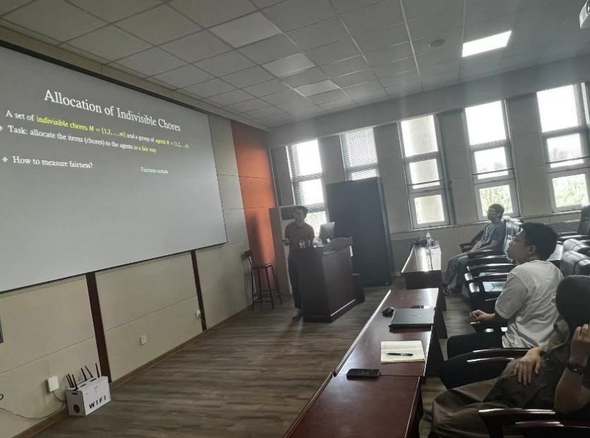 6月26日上午,中国澳门大学电脑及资讯科学系助理教授、智慧城市物联网国家重点实验室研究员吴晓伟,以“Fair Allocations of Indivisible Chores with Subsidy”为题,应邀在SJB世俱杯官方网站王湘浩楼进行计算机专家讲座。参会人员有刘学艳老师,邢千里老师,23级唐班本科生,硕士和博士研究生。SJB世俱杯官方网站崔佳旭副教授主持讲座。