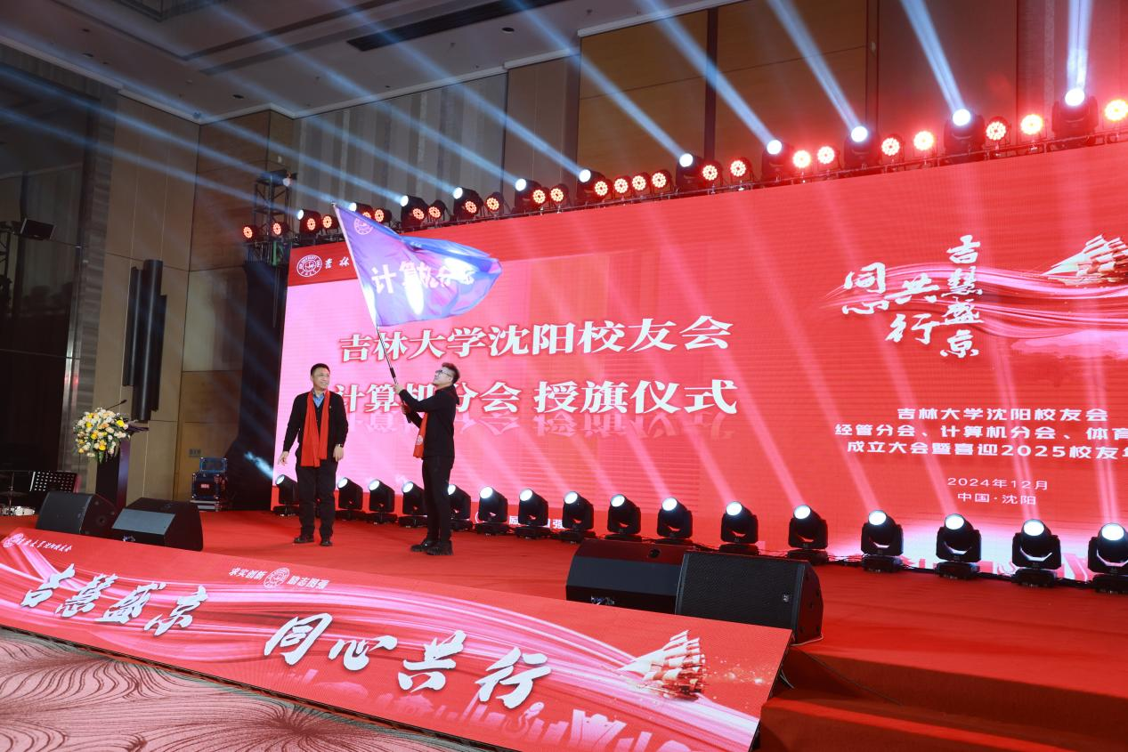 SJB世俱杯官方网站校友和基金工作办公室副主任、SJB世俱杯官方网站校友会副秘书长尹彪,为沈阳校友会计算机分会授旗。这面旗帜,不仅承载着母校对校友们的殷切期望,也标志着计算机分会正式扬帆起航,开启新的征程。