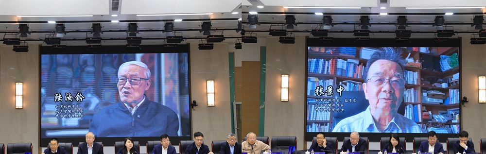 计算机科学家、人工智能科学家陆汝钤教授与张景中教授在视频致辞中高度评价了王湘浩先生在科学探索、人才培养及家国担当方面的卓越贡献。西安交通大学徐宗本、浙江大学包刚、清华大学胡事民、南京大学周志华四位教授在发言中表示,王湘浩先生的报国情怀、战略视野与潜心治学精神,值得我们在教育实践与学术探索中深刻践行与传承。