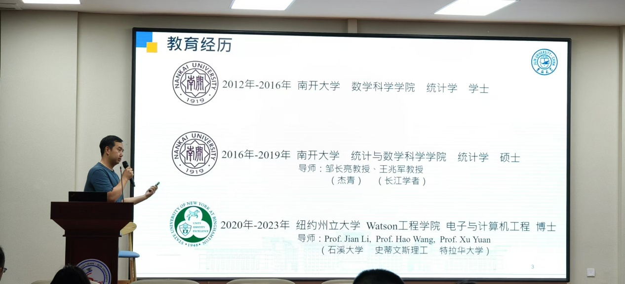 随后,燕刚教授结合自身经历,以“跨学科研究与学术成长”为主题展开分享。他回顾了从统计学到计算机学的交叉学科探索历程,并推荐了读研期间的经典书目。燕刚老师还分享了读博期间导师的宝贵建议,以及如何在高水平期刊发表论文的经验,为在场学生提供了切实可行的科研指导。
