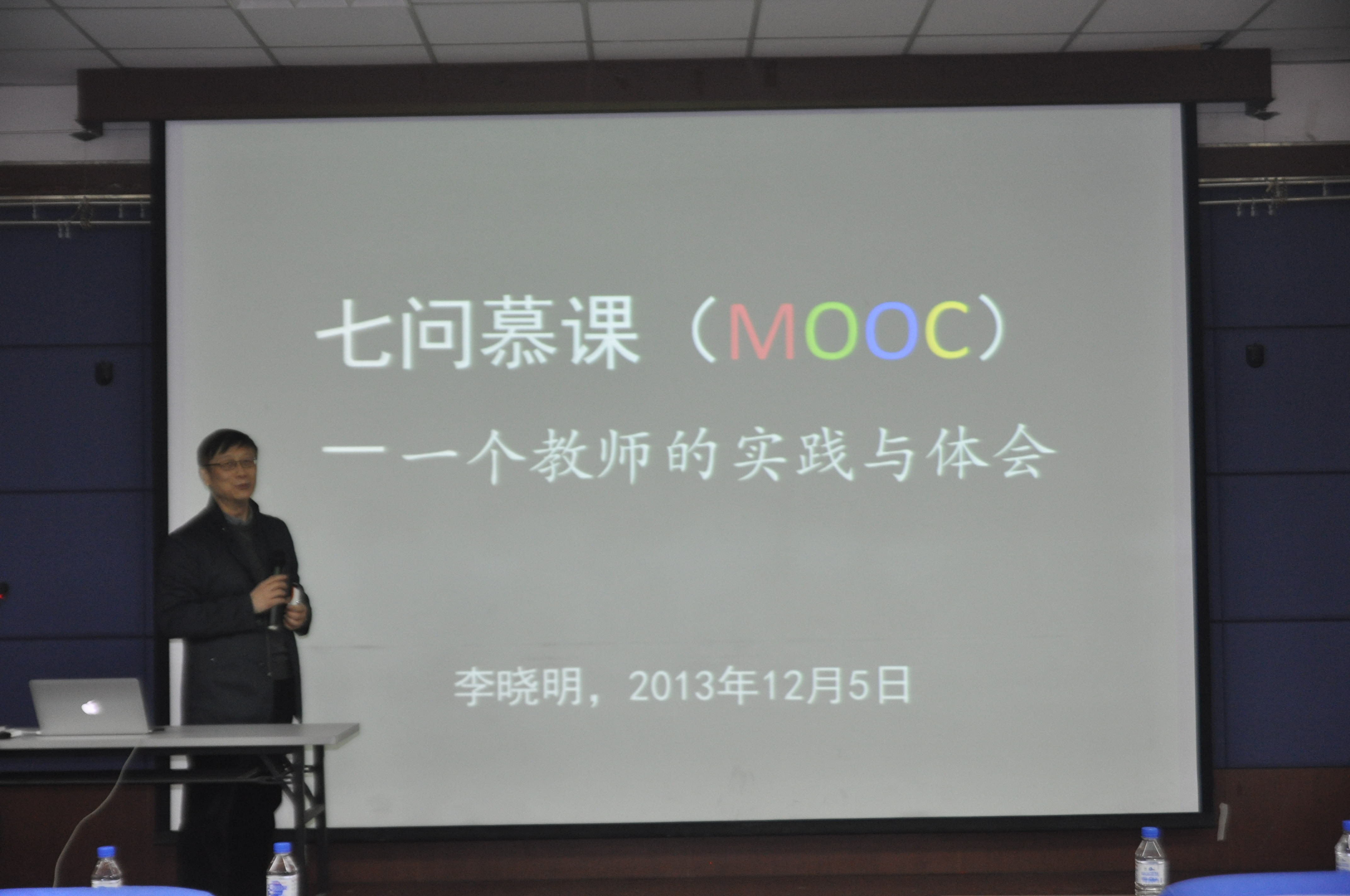 慕课(MOOC-Massive Open Online Course)是这一两年来兴起的一个概念,人们说2012年是美国的MOOC元年,2013年是中国的慕课元年,引起了学生、教育工作者、大学、教育行政管理部门,以及IT产业界的高度关注。北京大学从今年年初开始推进与慕课相关的工作,不少老师和学生积极参与,产生了一定的反响。李晓明教授结合参与北京大学慕课实践工作的经历,讲述了自己的体会。李晓明教授首先对慕课的概念进行了介绍,慕课是主讲教师负责的,支持大规模人群参与的,讲课视频、作业练习、论坛互动、邮件、考试这5要素相互交织的教学过程。接着李教授以北京大学已经发布的慕课为例,用渊博的知识,生动的语言为大家讲解了为什么学生要学慕课、教师为什么要教慕课、大学为什么让老师教慕课、雇主怎样看慕课、慕课为什么能提高高等教育质量、慕课对习惯传统的教师的机遇和挑战等问题。李教授认为在未来,哪个学校的活跃MOOC多,这个学校就有影响,哪个国家的MOOC多,这个国家的高等教育就会有影响,对于教师个人,一门广受欢迎的慕课会是个人价值的一种体现,慕课不仅能传授知识,而且还能传播新的学术成果和思想。最后,李教授一一解答了现场教师提出的问题。讲座在大家热烈的掌声中圆满结束。