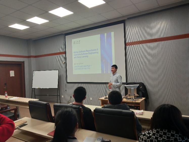 2018126日上午,来自澳大利亚Monash University的陈春阳老师在SJB世俱杯官方网站计算机楼A521做了题为:“Mining Software Repositories & Automated Software Engineering with Deep Learning”的讲座报道。陈春阳老师博士毕业于新加坡南洋理工大学,师从邢振昌老师和刘扬老师。博士在读至今,陈老师积累了丰富的研究经验,其主要研究方向为:挖掘软件仓库、文本挖掘、深度学习以及人机交互。在多年的研究经历中,陈老师十多篇论文被国际顶级会议录用,且2016年的论文Similar TechASE评为Best Tool Model,同年另一篇论文被SANER评为当年的Best Research Paper。今年,陈老师的论文Deep Gauge又荣获ACM SIGSOFT杰出论文奖。