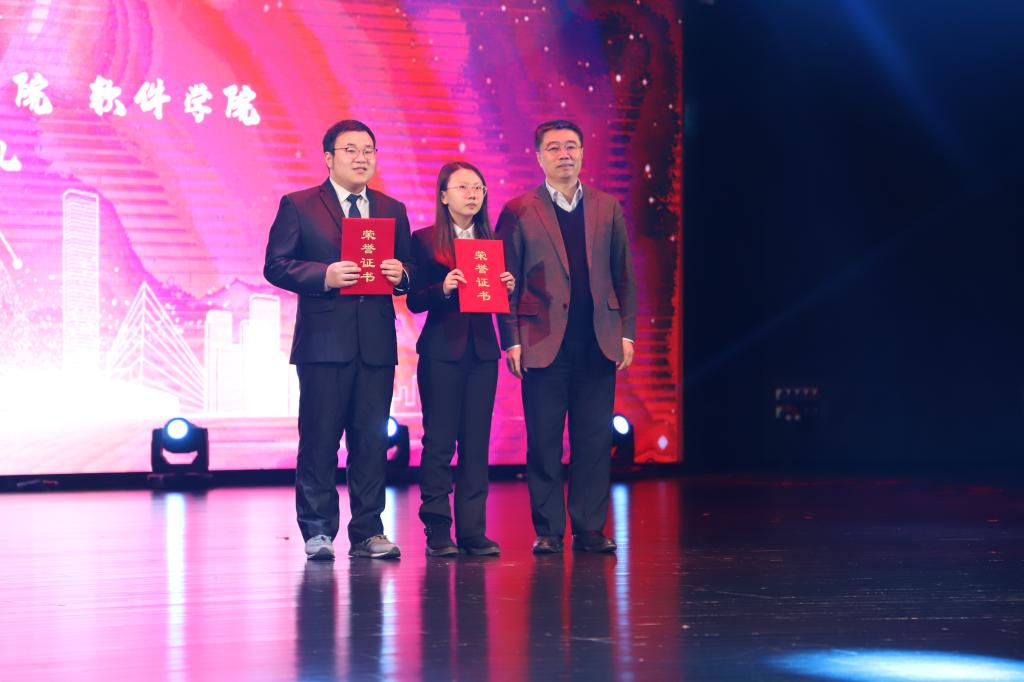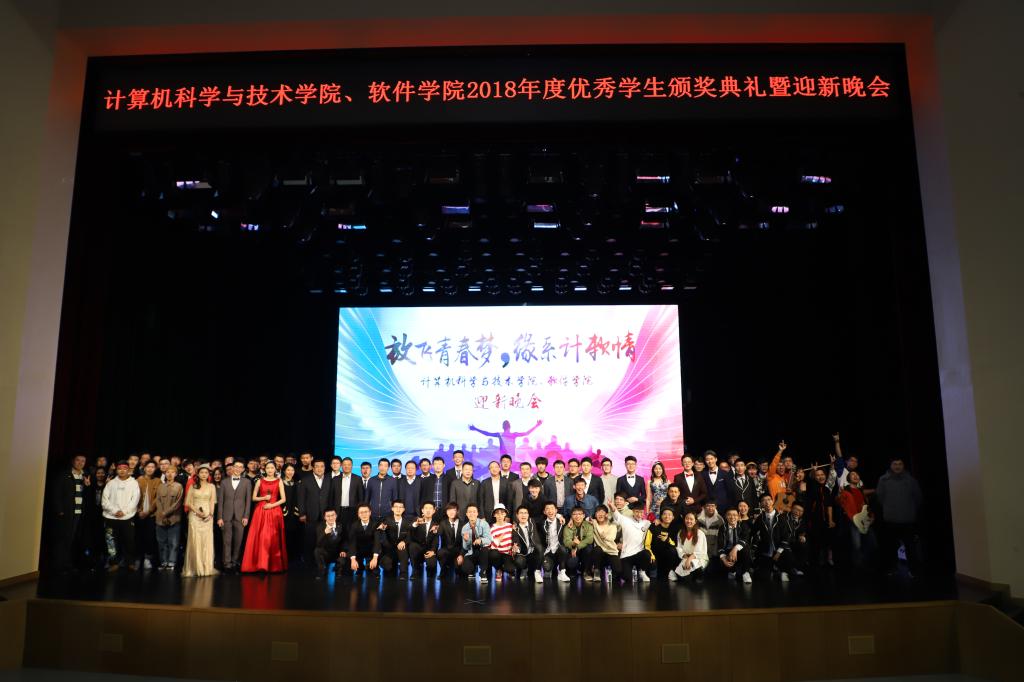 2018年12月17日晚18:00,SJB世俱杯官方网站、软件学院在鼎新大讲堂联合举办了2018年度优秀学生颁奖典礼暨“放飞青春梦,缘系计软情”迎新晚会。出席晚会的嘉宾有学生工作部部长张国兴老师,研究生工作部副部长赵玥老师,教务处处长刘鹤老师,保卫处处长宫皓宇老师,学生就业创业指导与服务中心主任钟新老师,校团委书记代磊老师,SJB世俱杯官方网站党委书记孟繁二老师,SJB世俱杯官方网站、软件学院院长魏晓辉教授以及两院党政领导班子,教职工代表及全体2018级新生。