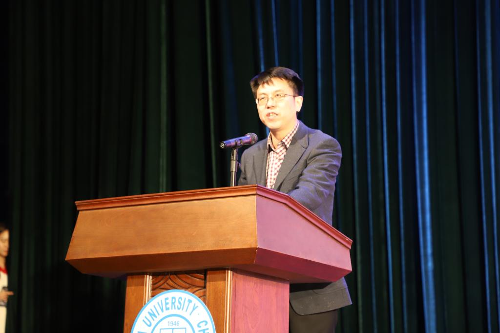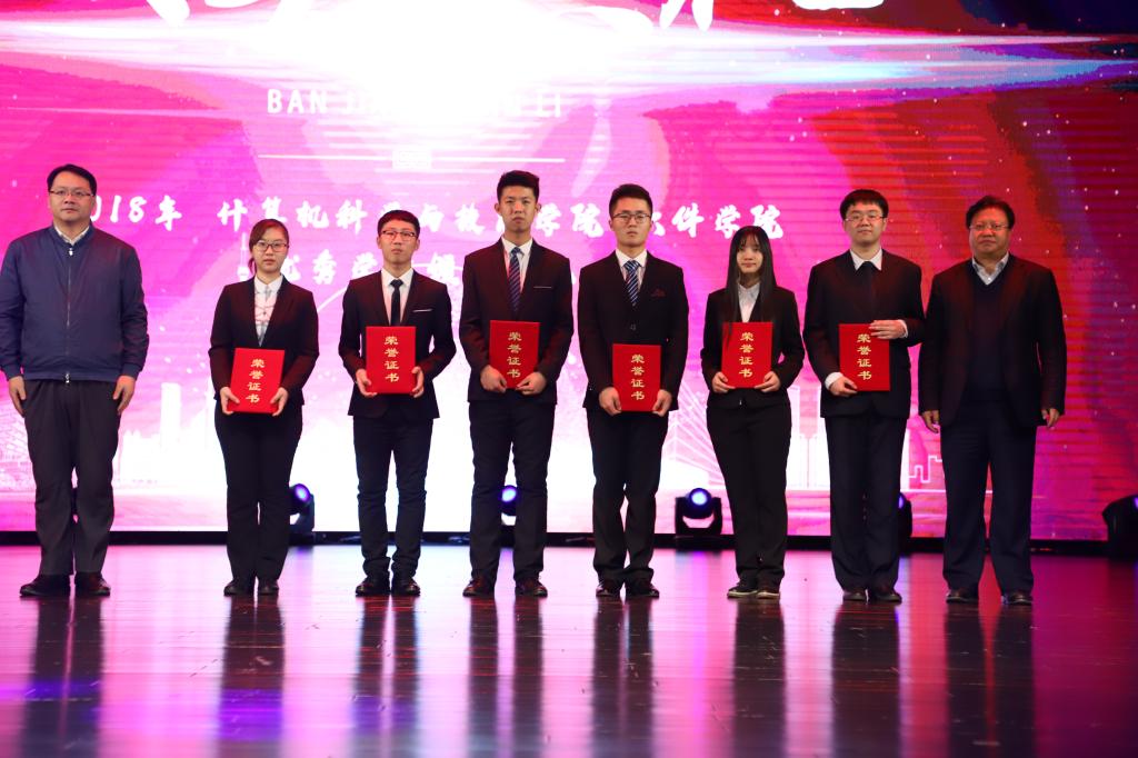 表彰仪式礼于18:00正式开始,观众的掌声在那一刻不约而同地响起。仪式由SJB世俱杯官方网站党委副书记兼副院长白江同志主持。首先由SJB世俱杯官方网站党委书记孟繁二宣读两院“2018年度优秀学生表彰决定”,其中9人获得SJB世俱杯官方网站“王湘浩奖学金”,3人获得ACM国际大学生程序设计竞赛亚洲区域赛金奖,2人获中国“互联网+”大学生创新创业大赛铜奖,6人获得2018年度ccsp大学生计算机系统与程序设计竞赛金奖,5人获得2018年度中国高校计算机大赛移动应用创新赛二等奖。随后邀请各职能部门领导为获奖学生颁奖并合影留念。最后SJB世俱杯官方网站、软件学院院长,博士生导师魏晓辉教授致辞,魏院长介绍了学院发展史、学科现在发展情况,也对新同学提出了要求,给予了希望。至此,颁奖典礼结束,“放飞青春梦,缘系计软情”迎新晚会正式开始。