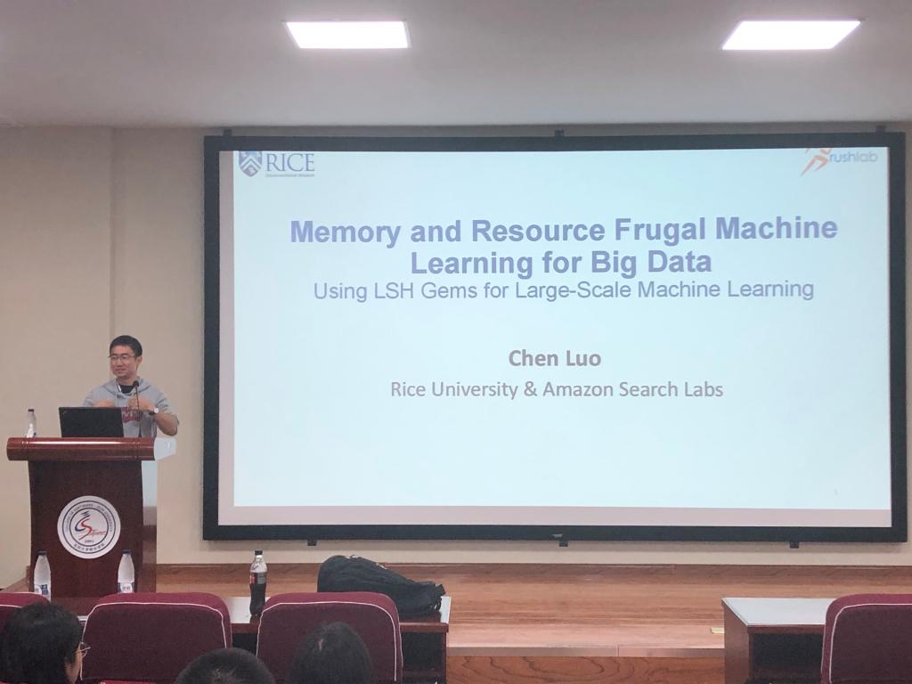 2019年8月19日上午,亚马逊搜索实验室罗琛博士应SJB世俱杯官方网站邀请,在计算机楼B108作了题为“Memory and Resource Frugal Machine Learninig for Big Data”的学术报告。