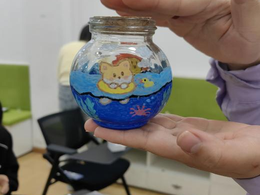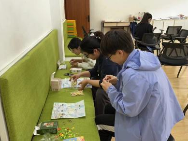 在各单位主办方的联络下,参与与未参与线上环节的各学院同学们相聚敬信教学楼团体辅导室。明信片被写满充满陌生人善意的祝福语,一张张地缓慢地落在收纳盒里;积木花、团扇等手工品在相知相识的过程中被完成,一件件都见证烦恼的倾诉、友谊的建立。