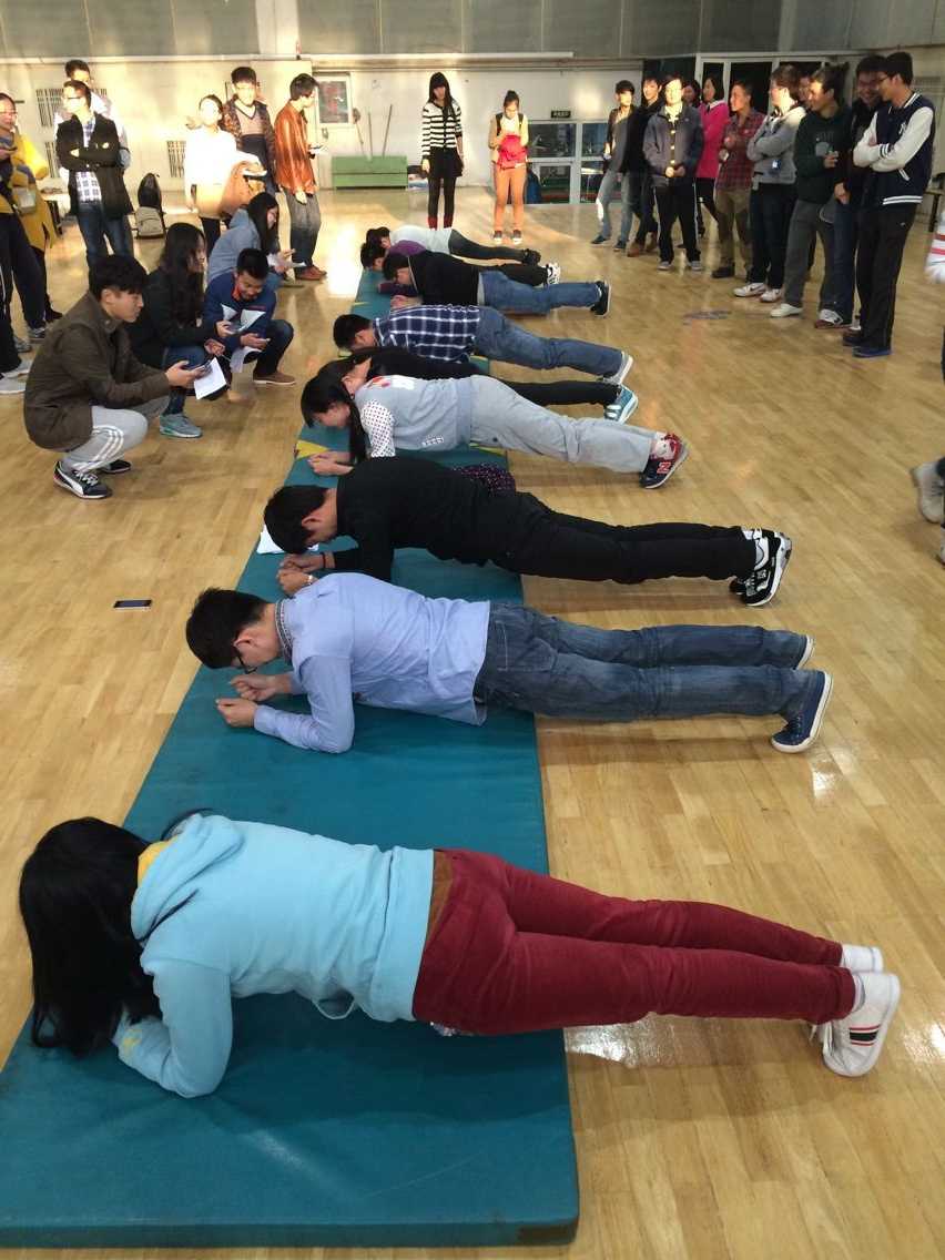 本次比赛分为团体赛和个人赛,要求选手在瑜伽垫上伸直全身进入俯卧姿势,用脚趾和前臂支撑住身体,保持规范的plank动作时间最长的即为获胜者。在比赛过程中,参与者都尽自己的最大全力发挥各自的潜力,力争坚持更长的时间。其中女子组田雪颖和杨晓音的比拼成为当日个人赛的焦点,最终田雪颖以6分37秒的成绩获得最后的胜利。团体赛共有15支队伍参赛,各教研室同学纷纷为自己的队伍呐喊助威,最终知识科学与知识工程梯队以27分42秒的总成绩获得团体赛冠军,该队选手日本留学生那柯将人赢得了男子MVP。整场的比赛不仅是身体素质的比拼,更是一场耐力的比拼。参赛者标准的动作,持久的支撑赢得了众人喝彩,通过这场比赛提高了学生强身健体的积极性。