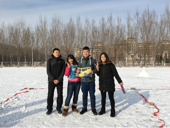 对于此次结合了北国冬季特色的雪上竞技活动,同学们反映热烈,纷纷踊跃报名,最终共有8支队伍进入雪上竞技的决赛。决赛各赛程的项目包括创意雪人表白、雪球赛以及咏雪。雪人作品中“温暖的大白”以电影卡通人物大白为主角打出温情牌,“稻草人”将等待的味道表达的淋漓尽致,这些雪人作品展现了同学们的创意与才华,给大家留下了深刻印象。而雪球赛尽显了同学们活泼的一面,男生们各个斗智斗勇,女生们也全都奋力拼搏,男女混搭队则显示了他们刚中有柔的独特优势。经过层层比拼与角逐,庞亮队以一男两女的搭配,凭借队长的迅速攻击能力和队员的躲闪有度、适时进击巧夺竞技赛一等奖。勾毓队、孙超队明确分工,团结一致以优秀表现拿下二等奖。王事业、巴特尔、张哲等队发挥不俗获得三等奖。李润华队在整个比赛中最好地展现了顽强拼搏,永不放弃的精神风貌,因此获得顽强拼搏奖。此外,最具创意奖等奖项也都名花有主。虽然冬日温度低达零下十几度,但同学们比赛的热情早已淹没了低温,运动产生的热量已然融化了严寒。最后所有队伍分别朗诵咏雪诗词,激发了同学们热爱自然、热爱祖国的情怀。